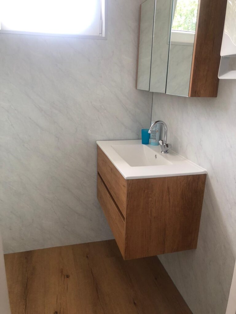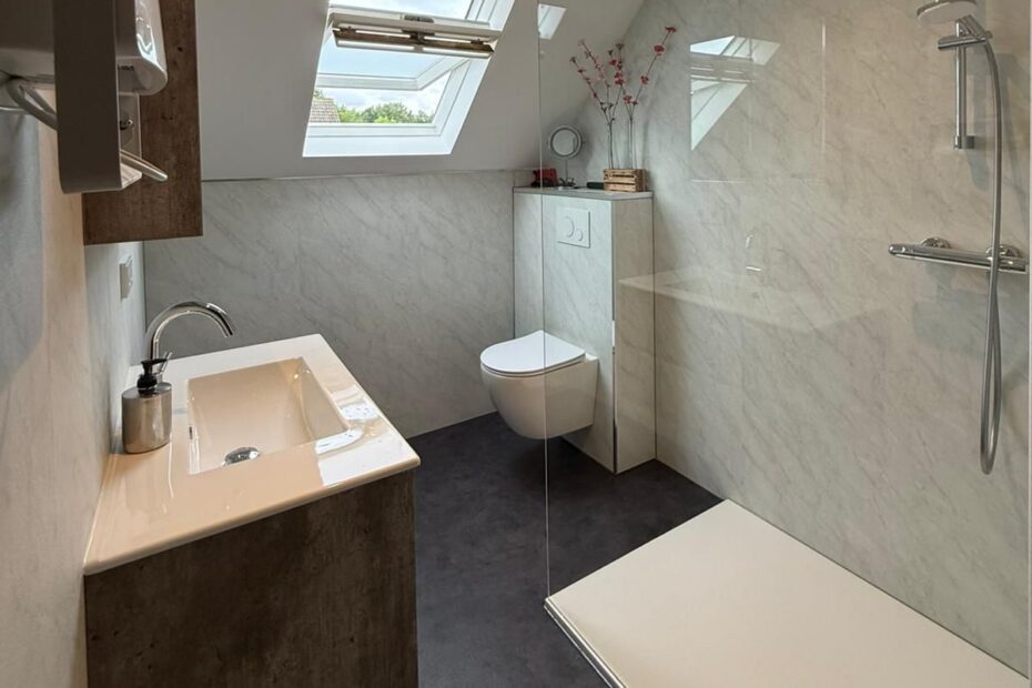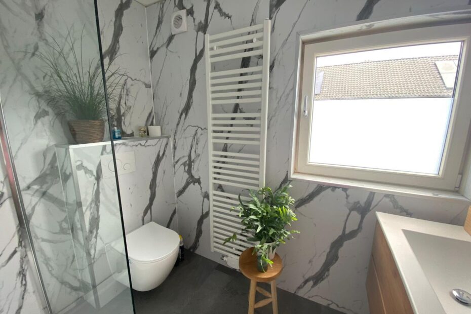 BadkamerZeker is ons all-in renovatiepakket met hoogwaardige wandpanelen, sanitair, PVC-vloer en vakkundige installatie. Je badkamer wordt in slechts 2 weken volledig vernieuwd — zonder breekwerk en zonder verrassingen achteraf.
